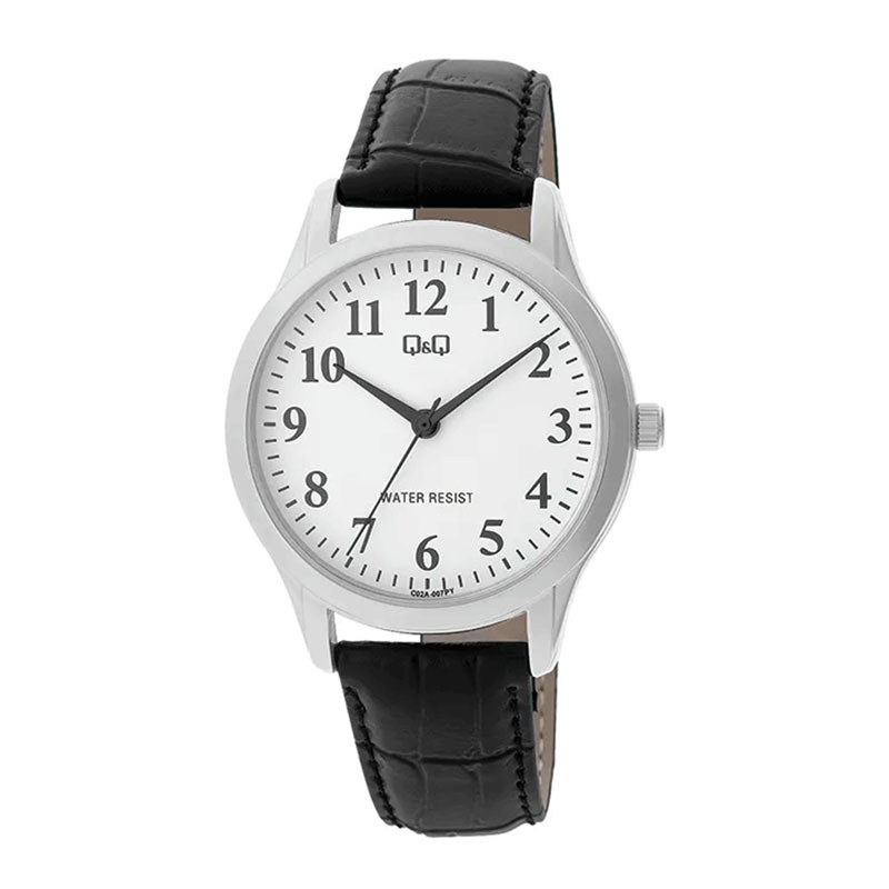 Meeste musta nahkrihmaga hõbedane käekell Q&Q C02A-007PY